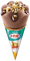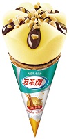 五羊甜筒经典口味系列(产品图片二):香脆的蛋筒包裹着幼滑的香芋味、哈蜜瓜味、巧克力味、菠萝味、双皮奶味及榴莲口味雪糕,香脆花生,顺滑口感,与表面的巧克力味涂层相互配合,啖啖好味。6种诱惑6种选择,将成为与你永远相伴的经典。